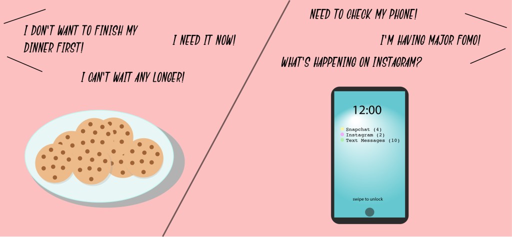 In fact, there are numerous videos that show young kids with something they love and can’t resist in front of them whether that is candy or other food, stuffed animal, technology of some sort, basically anything. The parents would then tell them that they have to go do something, but they are not allowed to touch it and when they return they must see that item still there to get a reward. So when they leave, we can see the urgency in the kids to have what is in front of them, and at times they may take the item play with it or eat a little bit but then put it back when their parents return or some will give in to their desire and urgency and eat the whole thing or be playing with it when they return. Adults are just as susceptible to their desires and urges as much as kids. They are becoming more and more addicted to their smartphones and other technologies. So when it is time to do work or get things done around the house or anything else, their desire to be on their phone or do anything than what they are supposed to be doing increases since the more work they have the more their desire is to be distracted. Also, their willpower to fight these urges decreases more as adults because there is more distractions than ever.