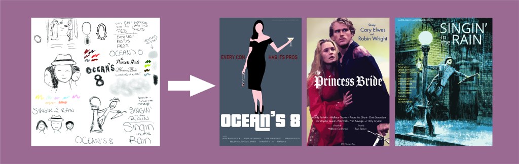 The videos that Vanity Fair did with James Verdesoto, an actual movie poster designer, who has created some of the ones we know and love to this day including Pulp Fiction and Ocean’s Eleven, has helped me tremendously. These videos includes Every Marvel Movie Poster, Explained, Movie Poster Remakes vs. Originals, Explained, and even Movie Poster Expert Explains Color Schemes. As I was watching these videos, James really broke down the posters and explained the reasoning behind what the designer chose to do for that poster. I was able to take what I learned from James and apply it to my posters even if it wasn’t the same genre for the poster. Overall, I learned a lot about myself and movie posters throughout this process and I was able to overcome obstacles and create interesting movie posters with a twist.