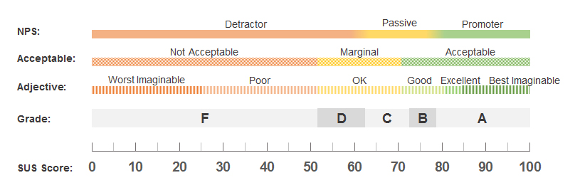 Sauro, Jeff. “5 Ways to Interpret a SUS Score.” MeasuringU, 19 Sept. 2018, measuringu.com/interpret-sus-score/.
